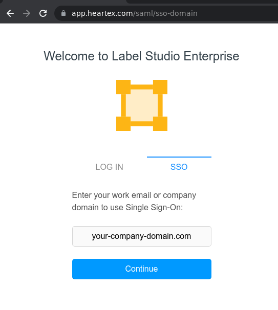 Now you are able to login using your SSO session, write your company domain on the SSO Login page: