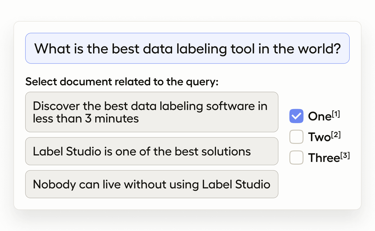 If you want to start training document retrieval or recommender models, you might want to develop a dataset with that identifies similar documents. Use this template to identify and choose documents that are related to a specific query or an existing document.